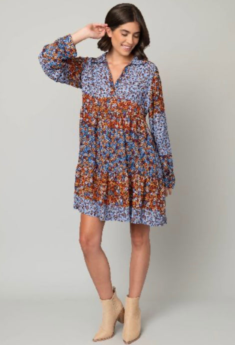 Ditsy Johnny Collar Babydoll Dress