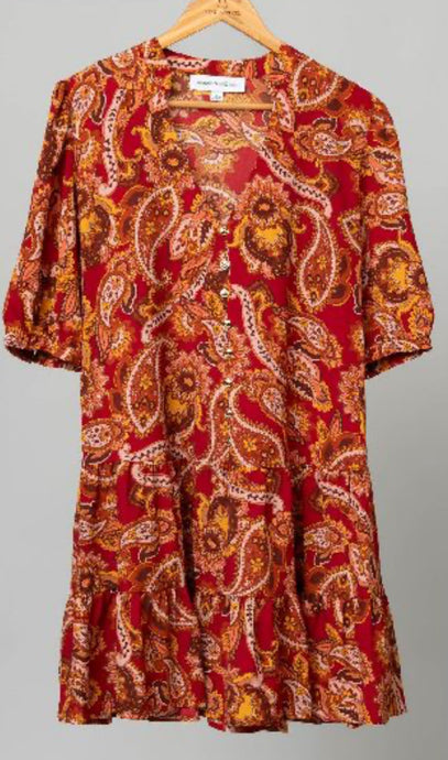 Paisley Button Front Babydoll Dress