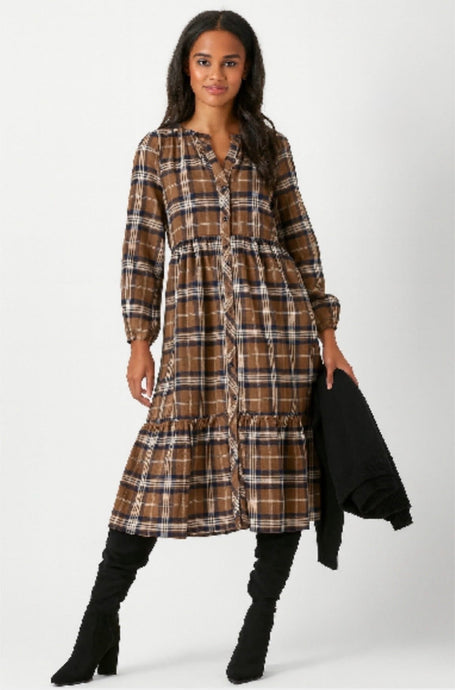 Flannel Self Sash Tiered Dress